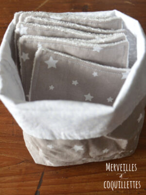 Panière + Lot de 7 lingettes nettoyantes « Etoiles grises »