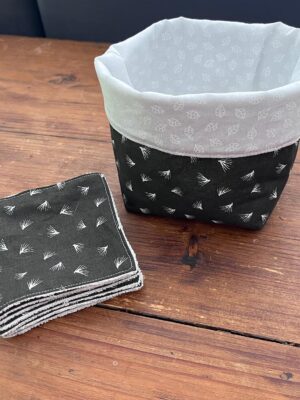Panière + Lot de 7 lingettes nettoyantes « feuilles galim noires »
