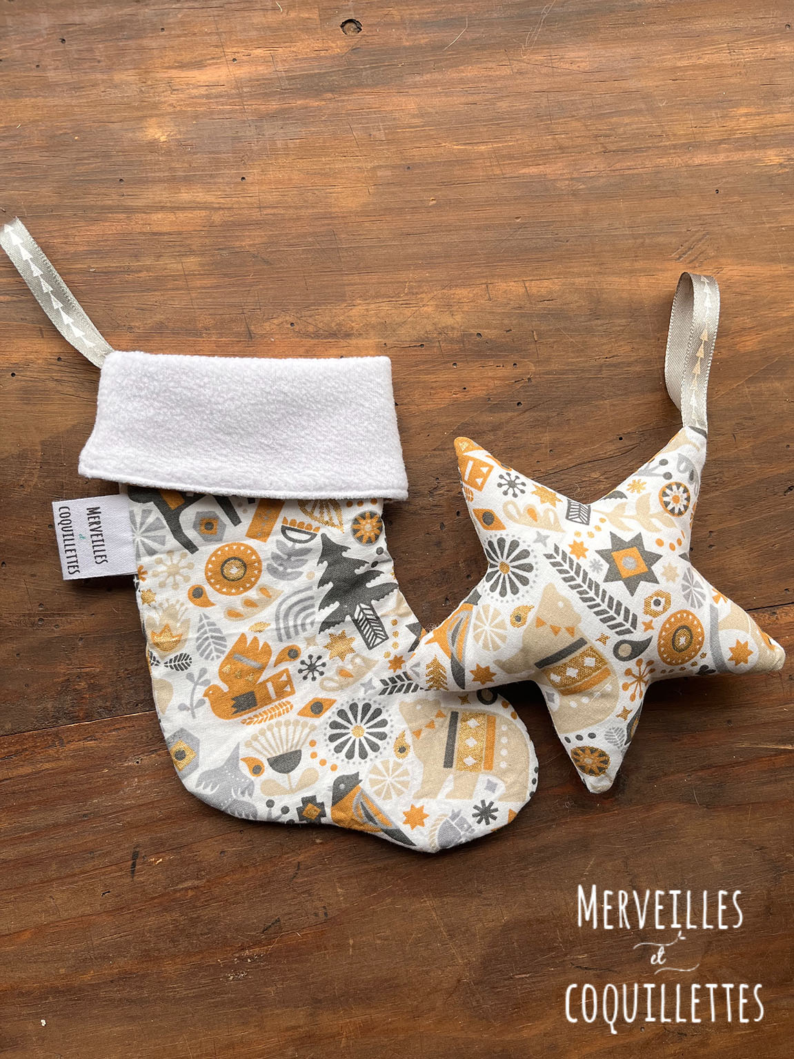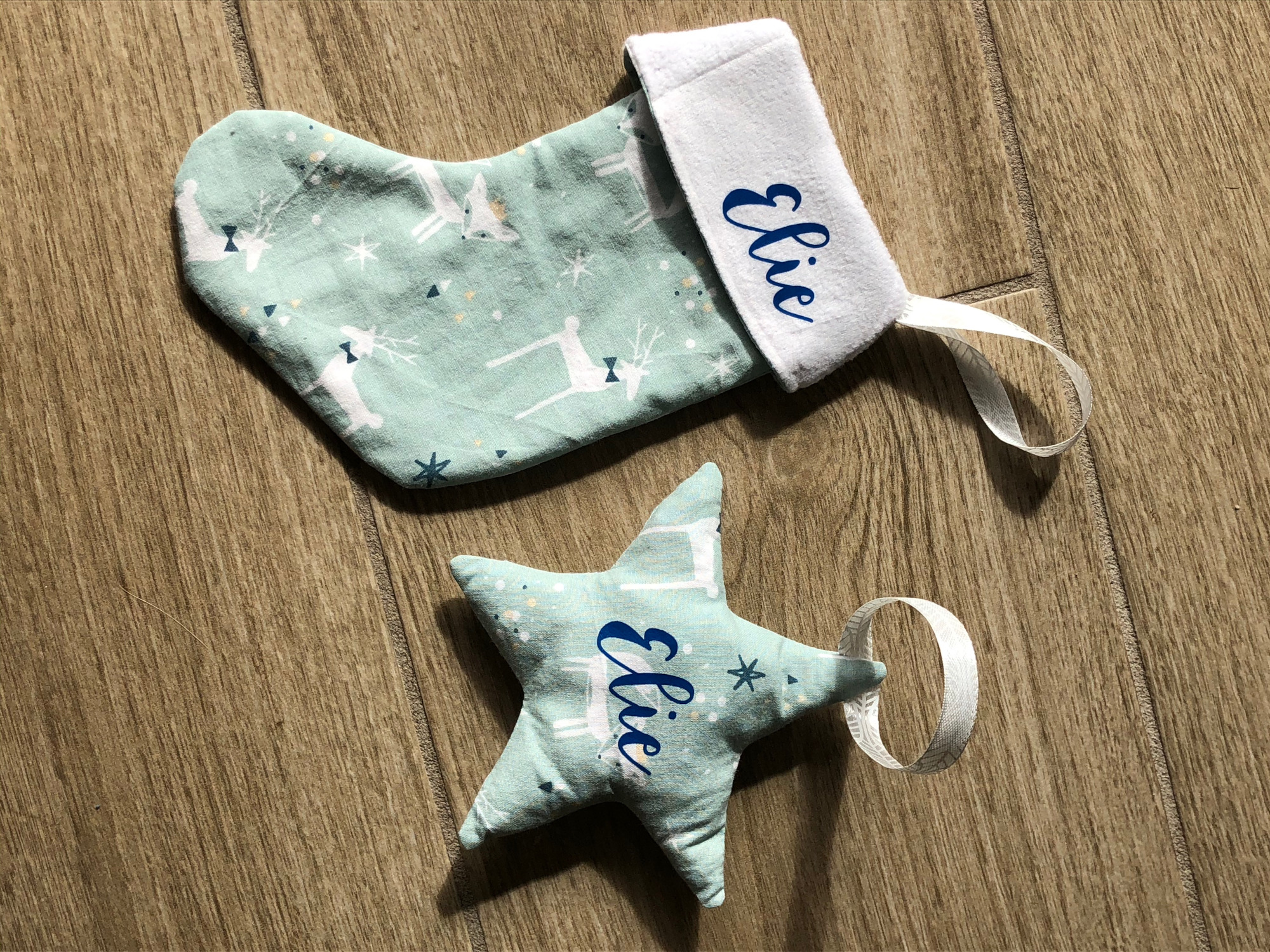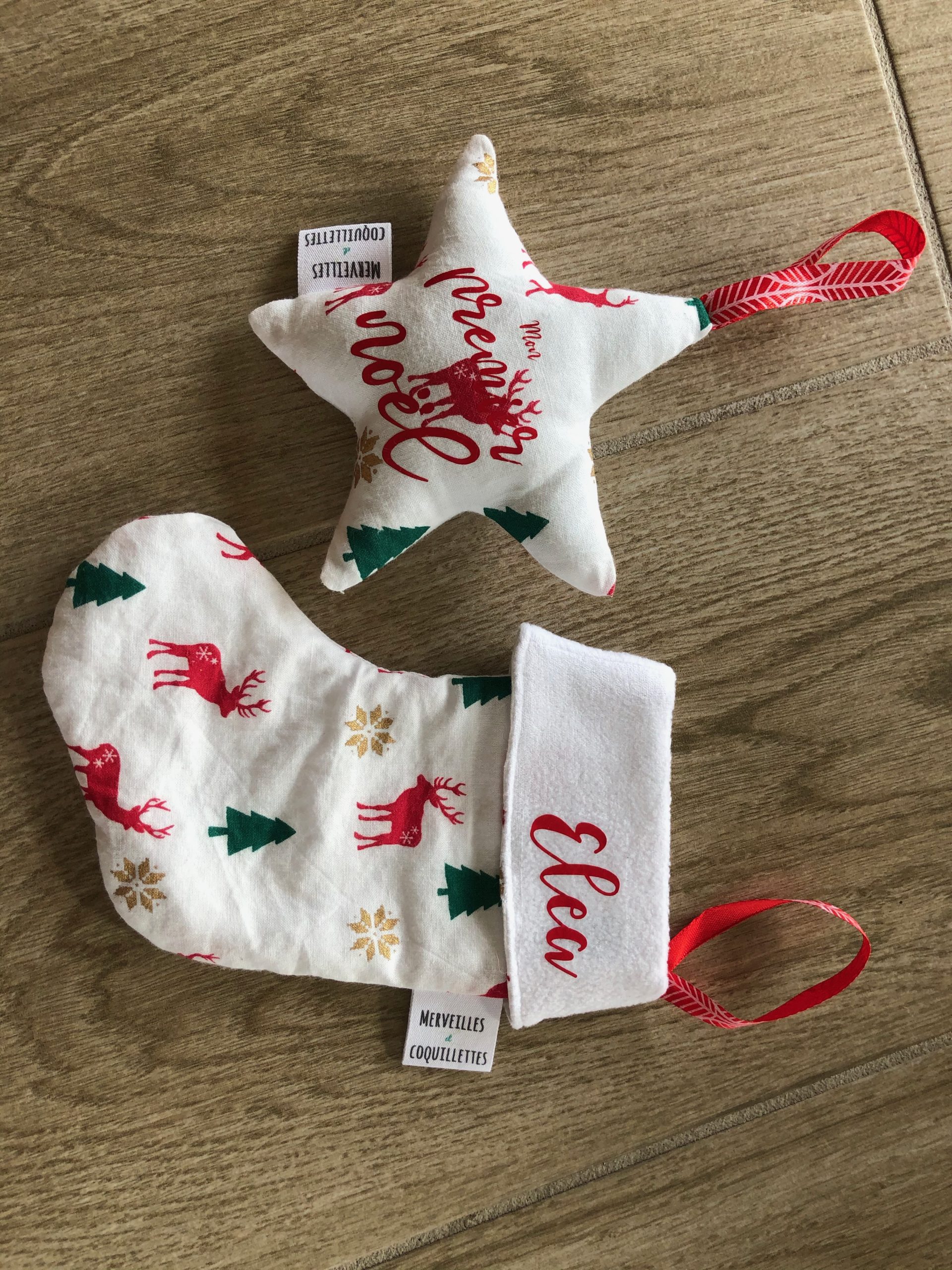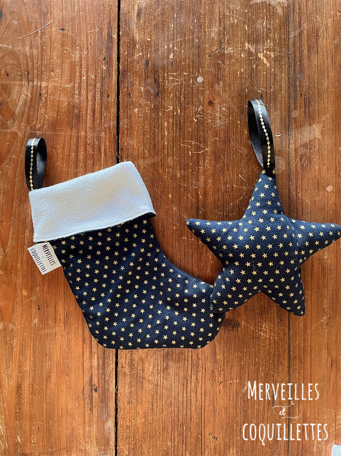 Petite chaussette et étoile à suspendre à une poignet ou au sapin.