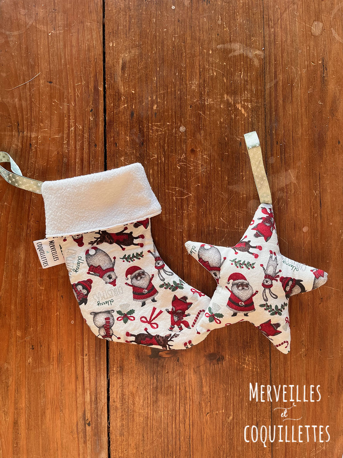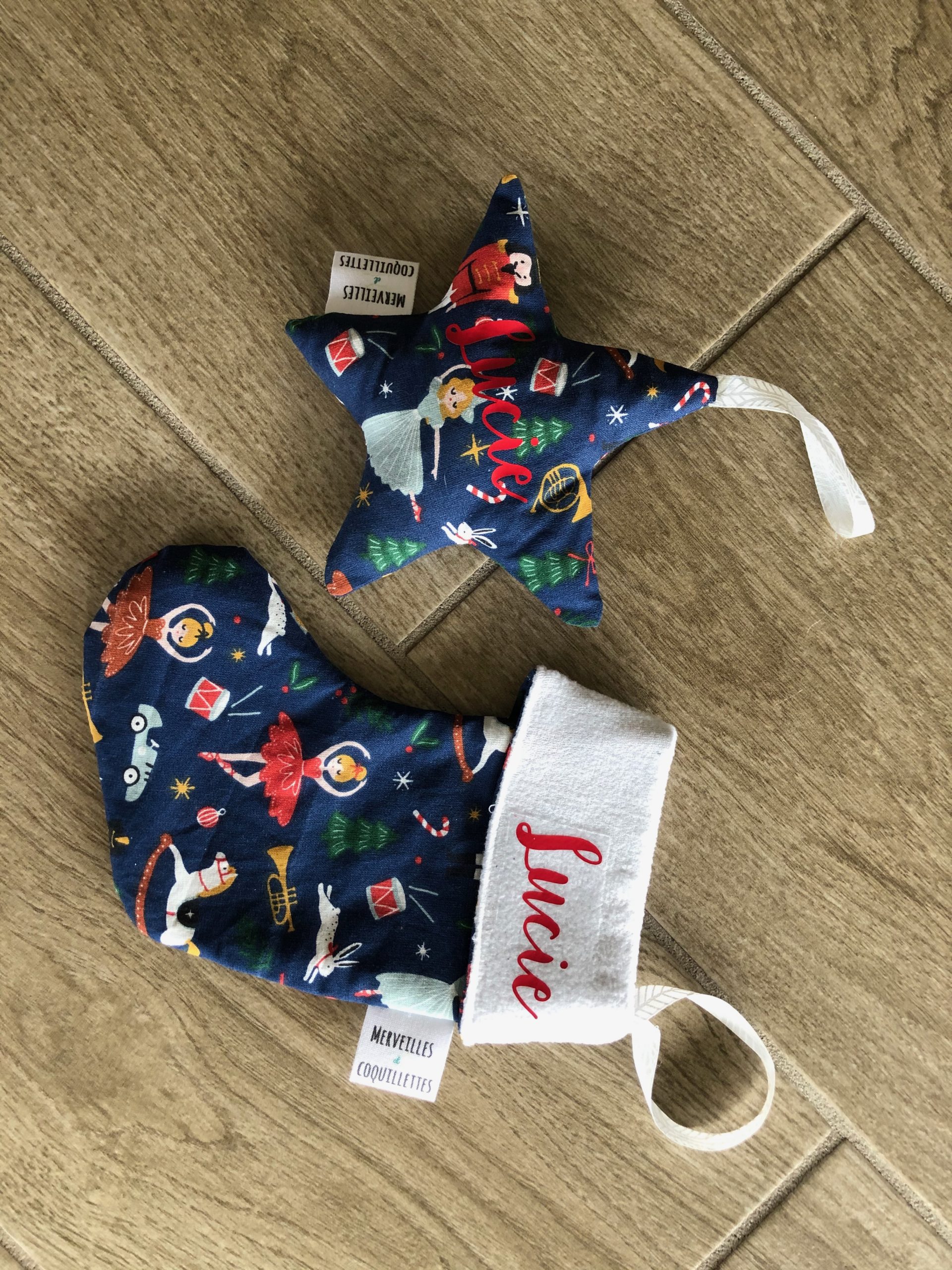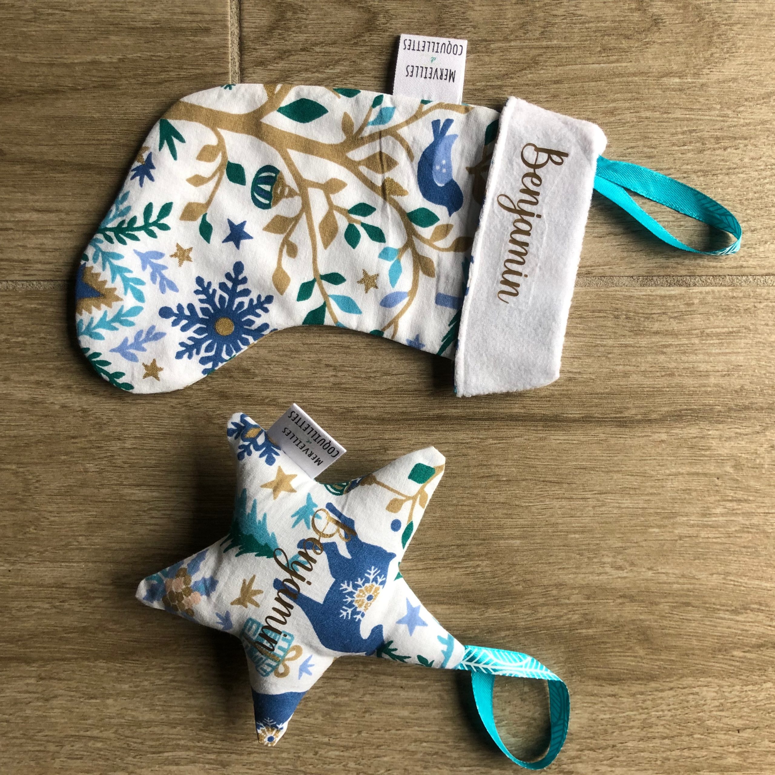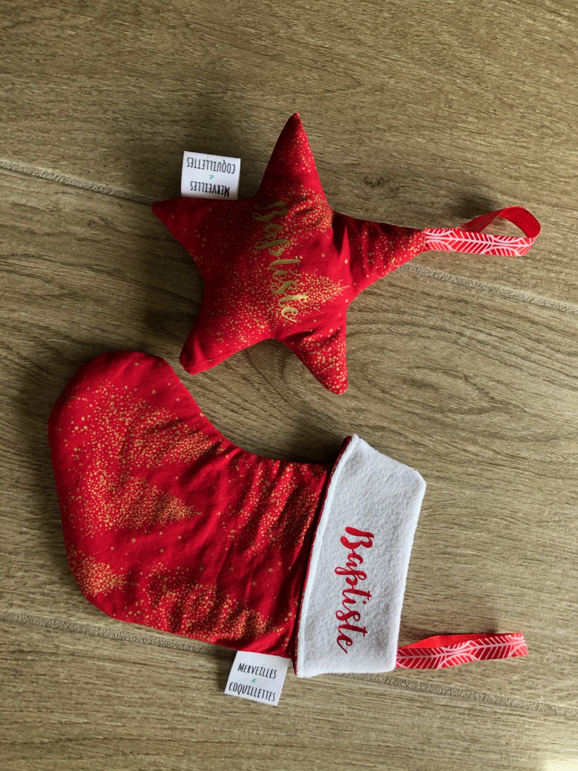 Petite chaussette et étoile à suspendre à une poignet ou au sapin.