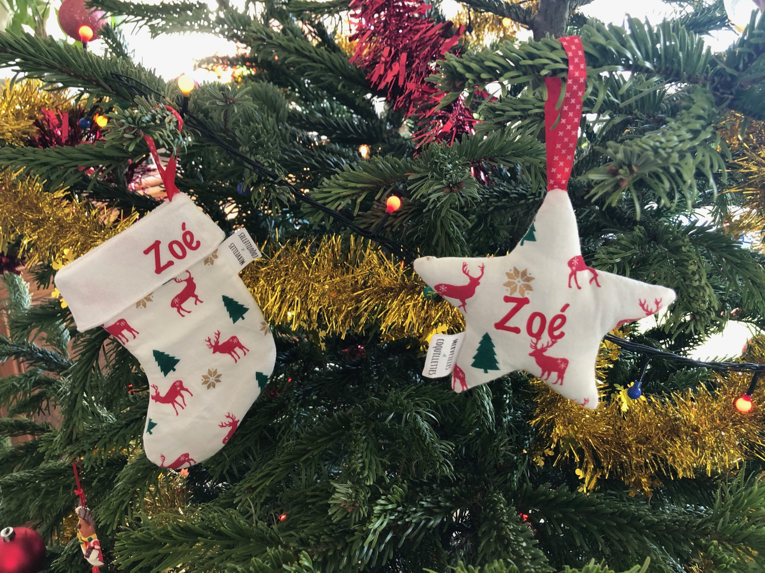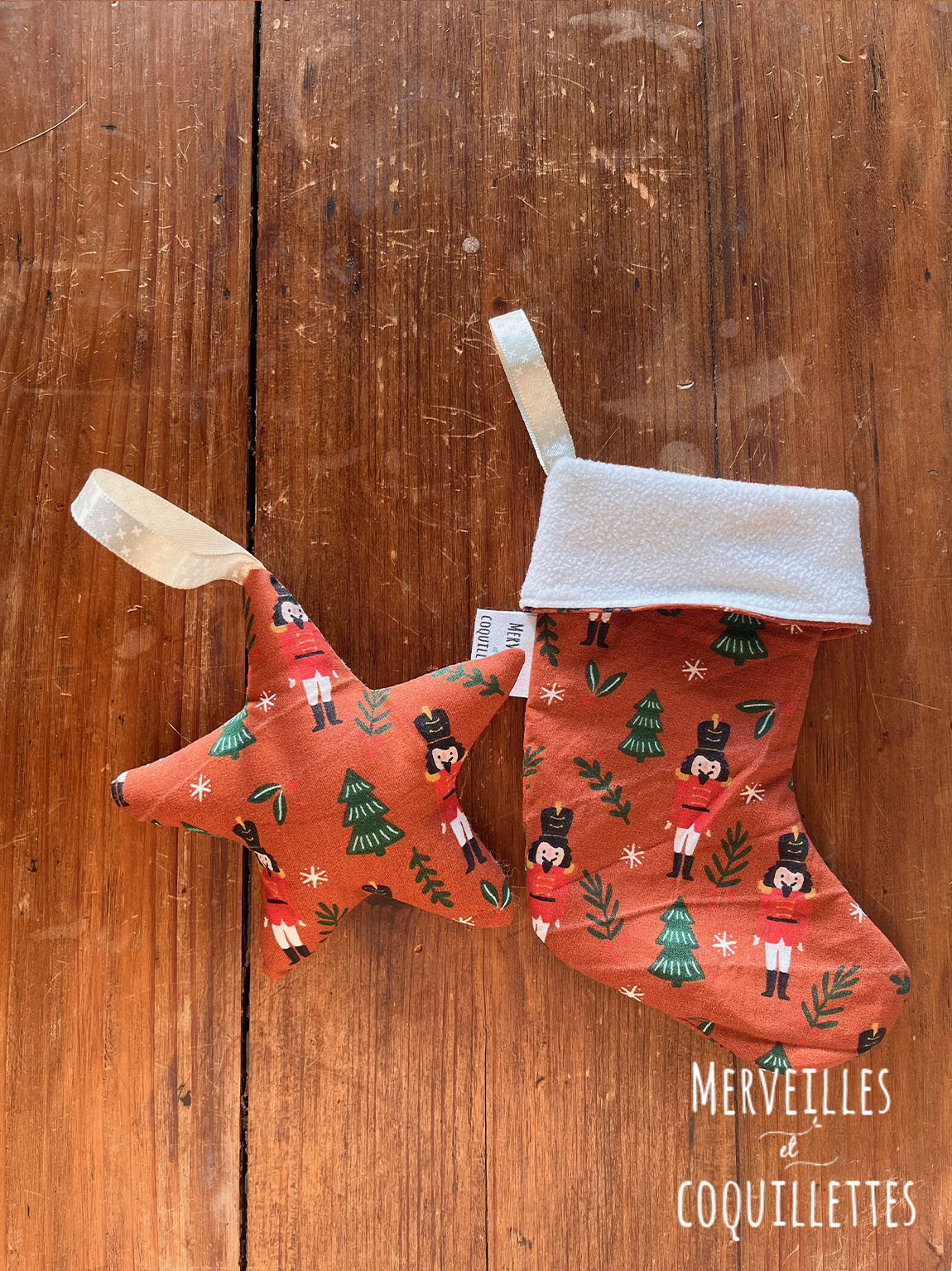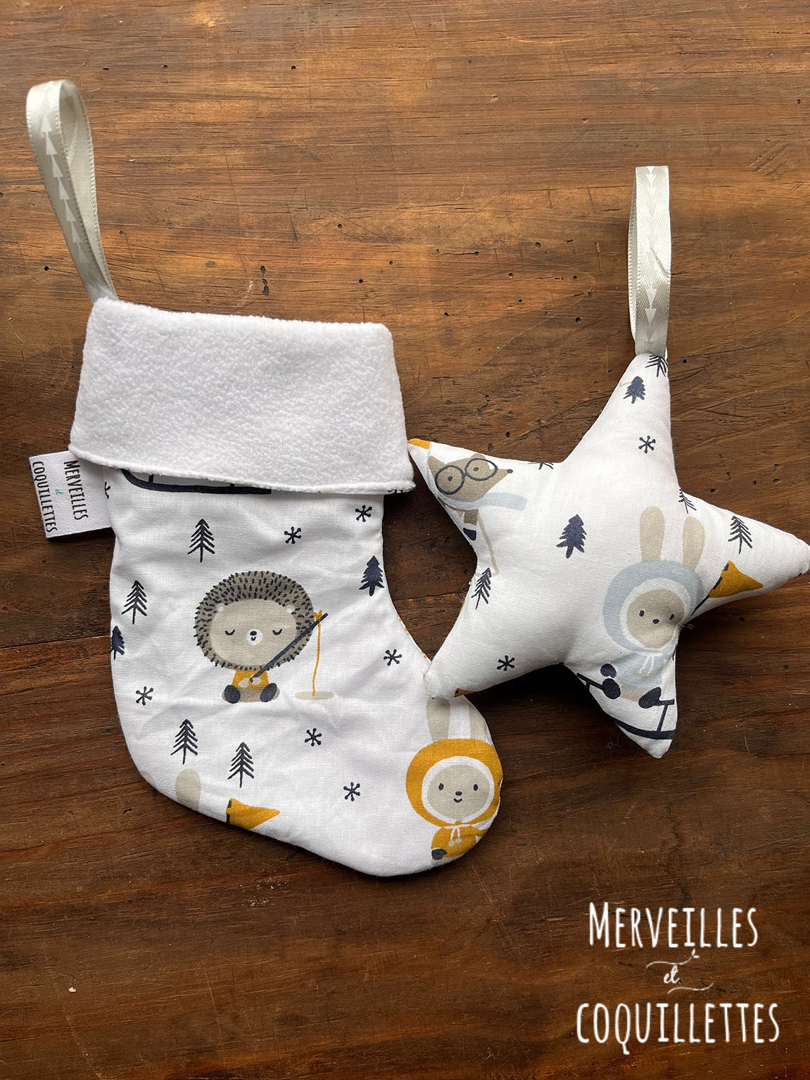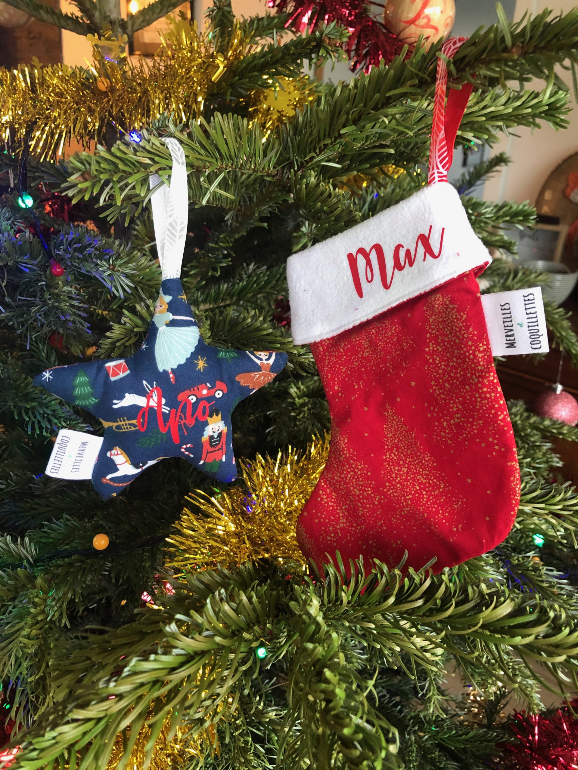 Petite chaussette et étoile à suspendre à une poignet ou au sapin.
