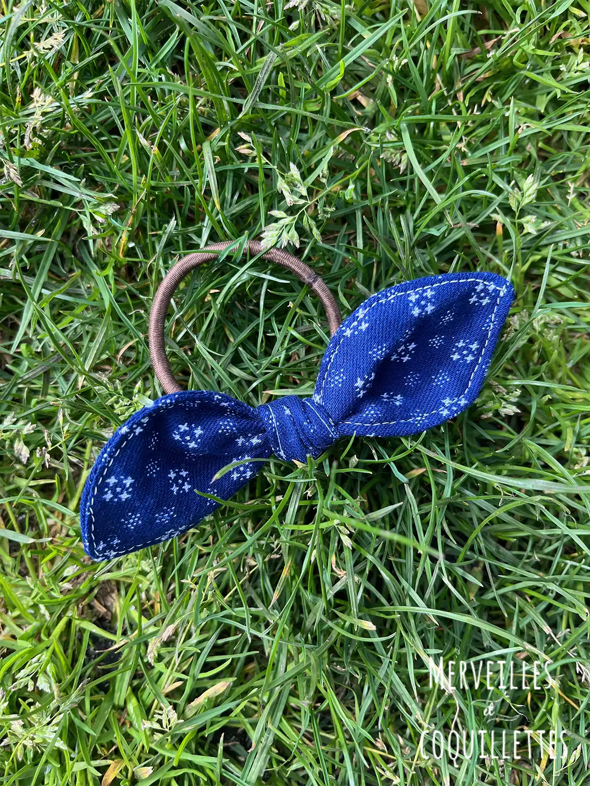Petit noeud fixé sur un élastique à cheveux pour rester tendance en toute occasion