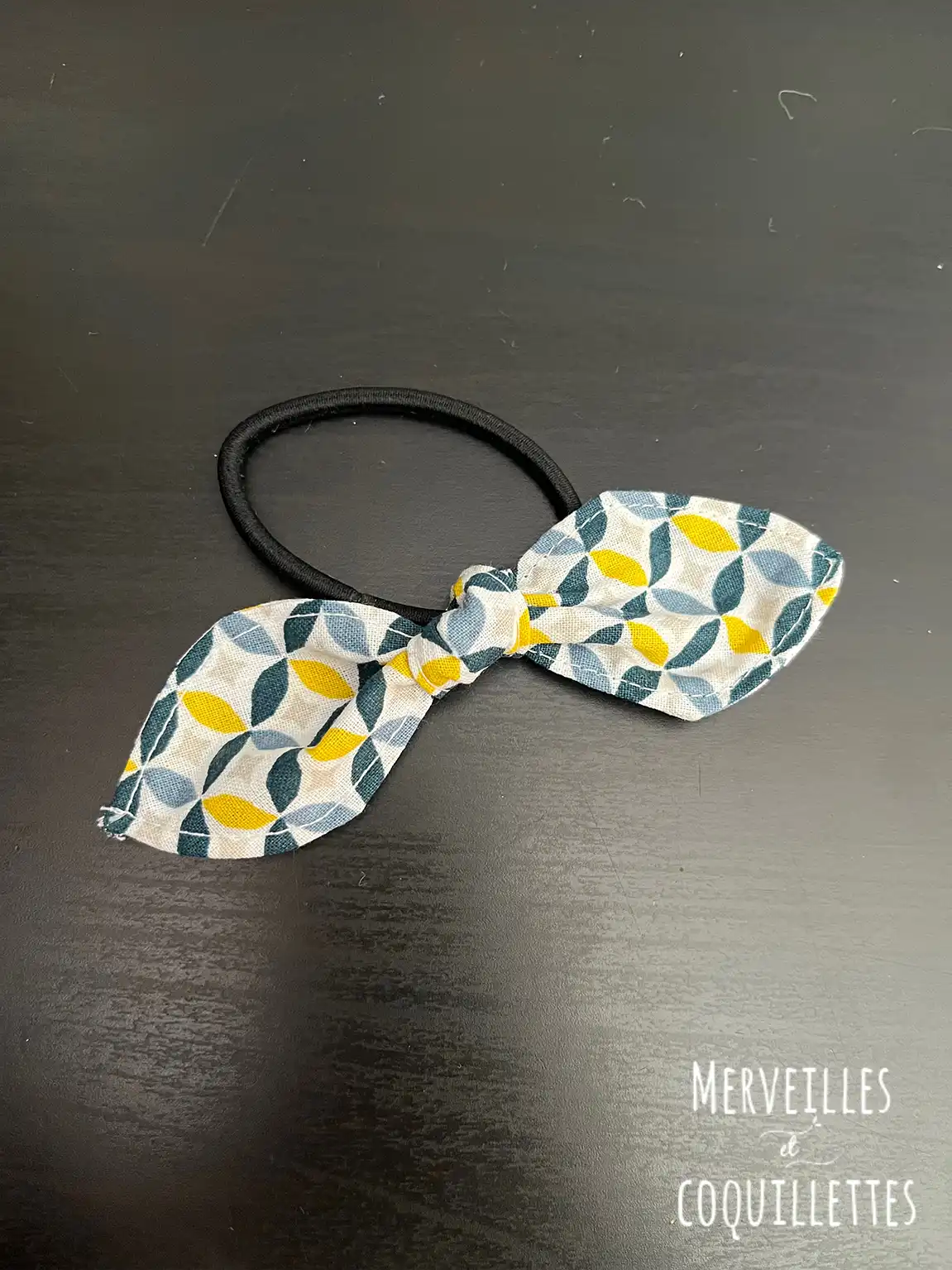 Petit noeud fixé sur un élastique à cheveux pour rester tendance en toute occasion