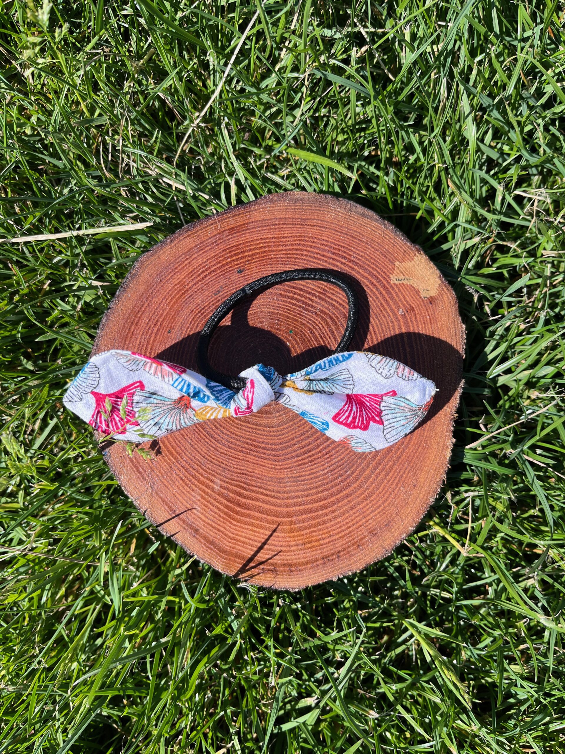 Petit noeud fixé sur un élastique à cheveux pour rester tendance en toute occasion