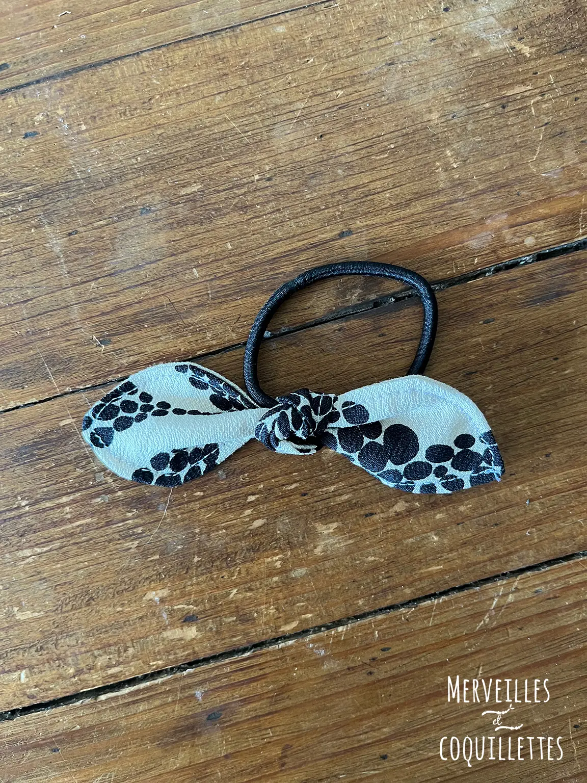 Petit noeud fixé sur un élastique à cheveux pour rester tendance en toute occasion