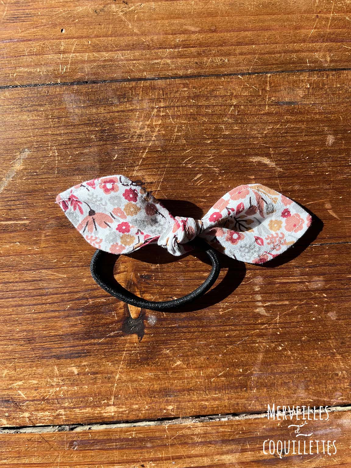 Petit noeud fixé sur un élastique à cheveux pour rester tendance en toute occasion