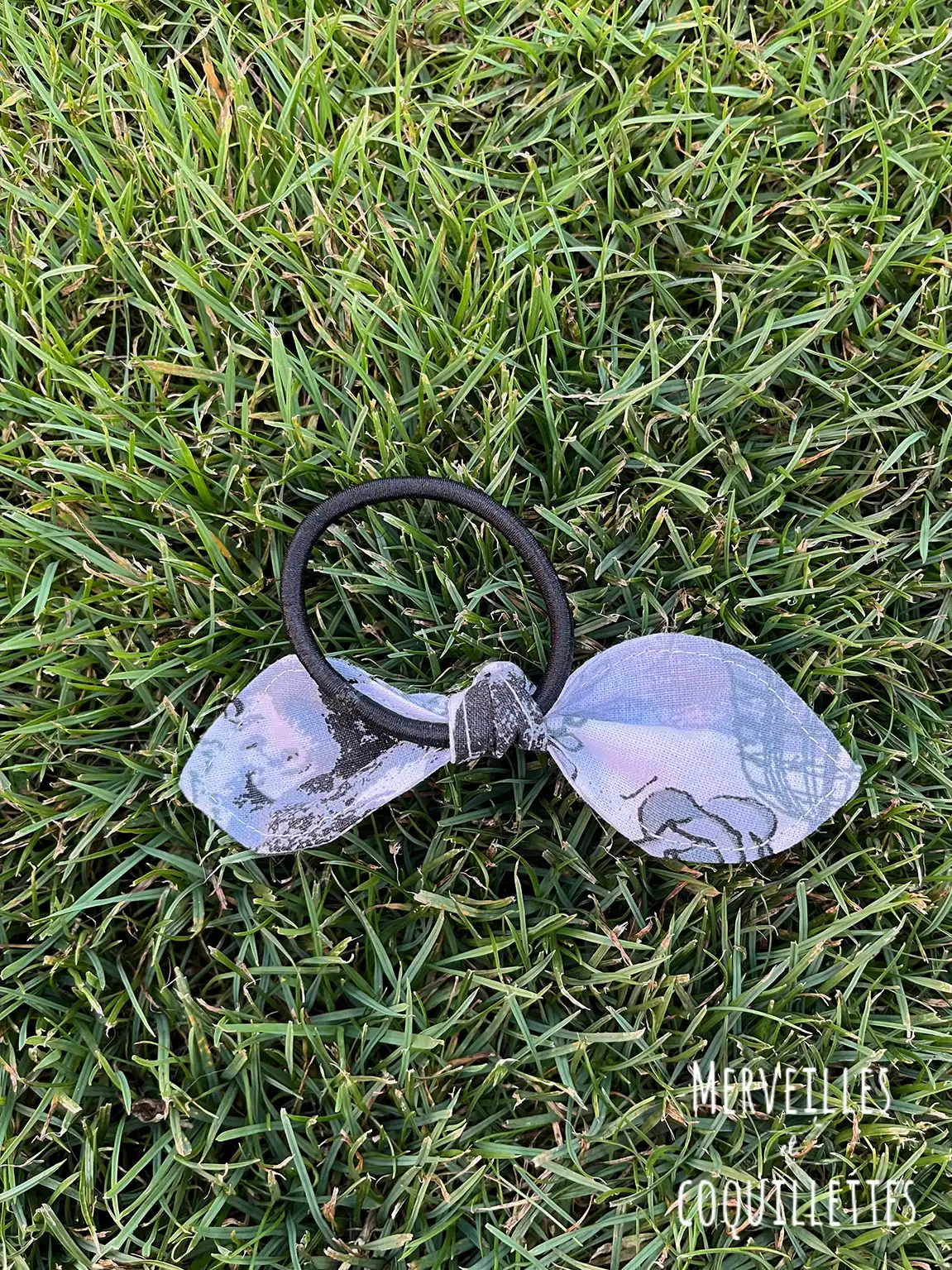 Petit noeud fixé sur un élastique à cheveux pour rester tendance en toute occasion
