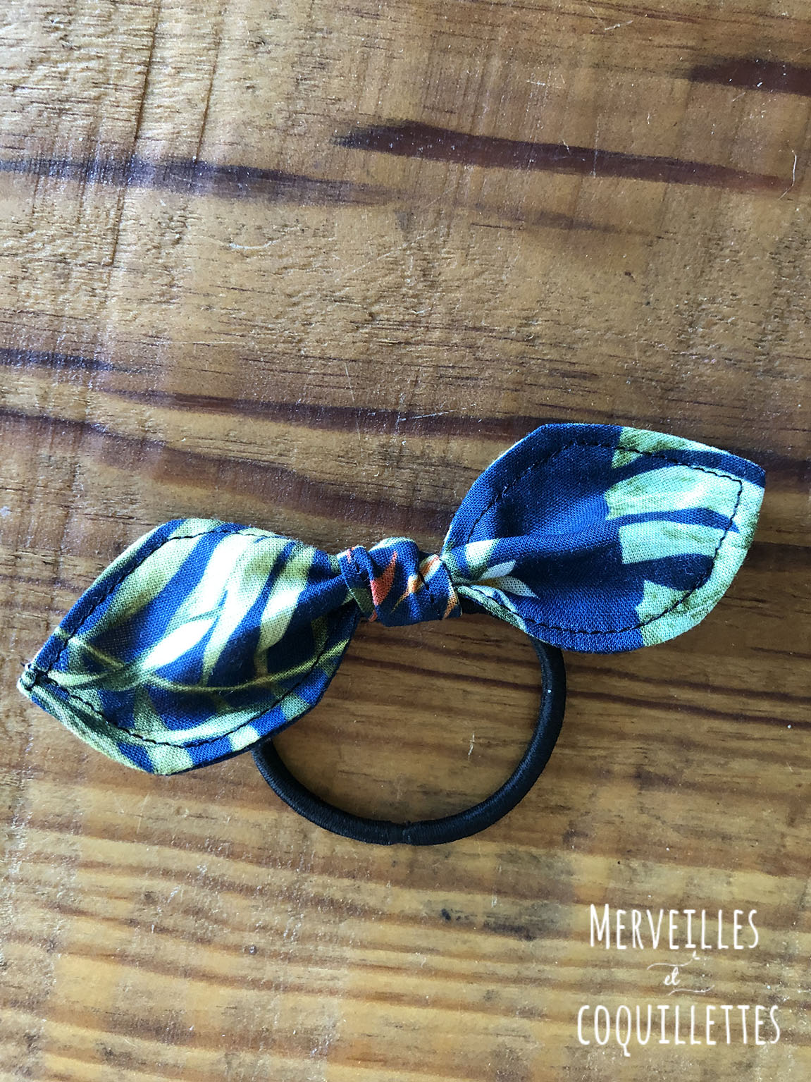Petit noeud fixé sur un élastique à cheveux pour rester tendance en toute occasion