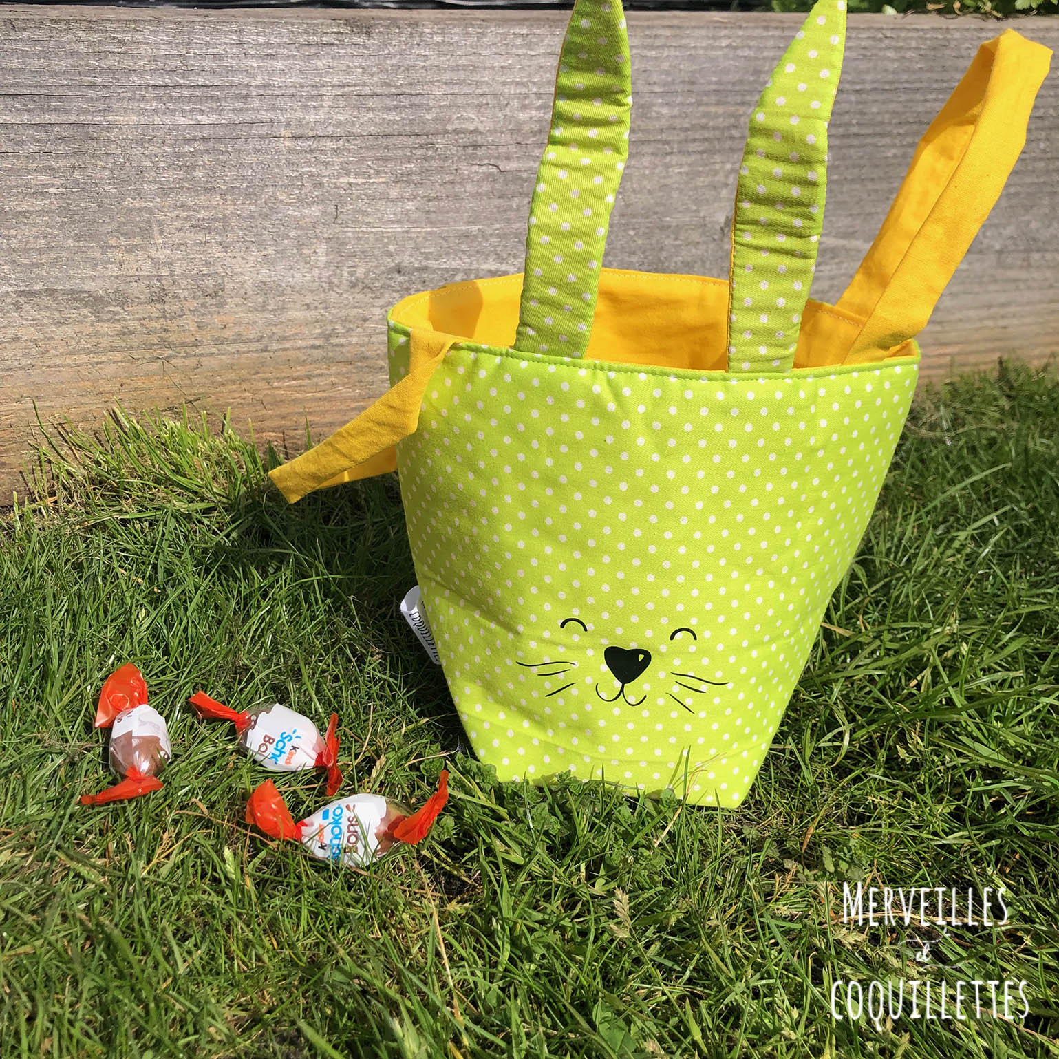 Petit panier avec anses et oreilles de lapin pour ramasser les chocolats de Pâques