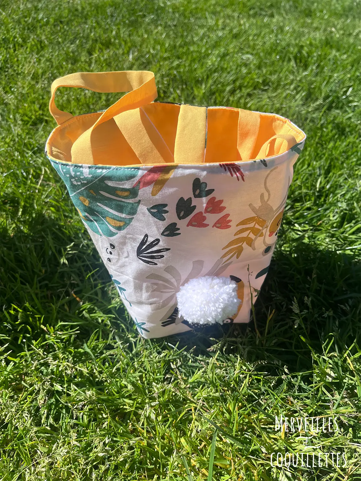 Petit panier avec anses et oreilles de lapin pour ramasser les chocolats de Pâques