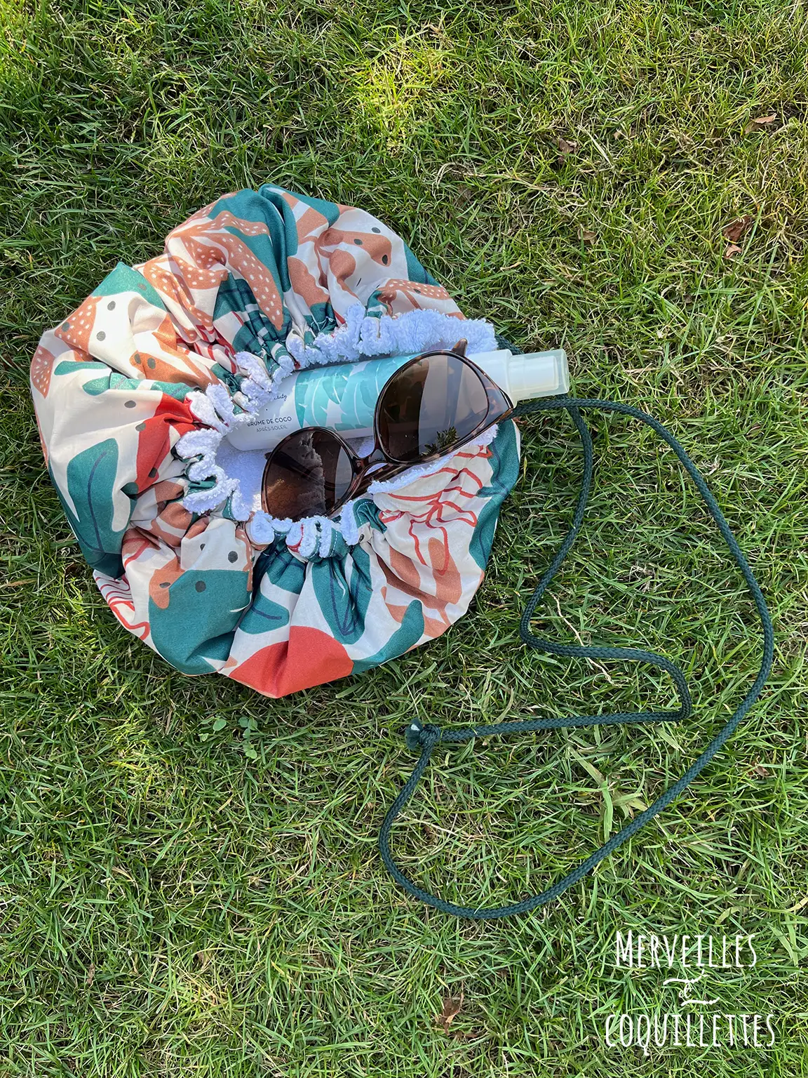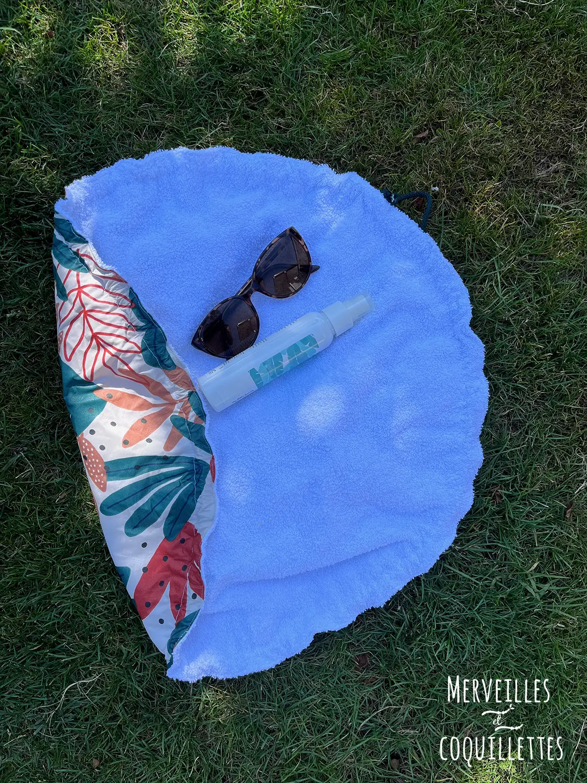 1 face en coton éponge pour essuyer les pieds et se changer au sec. 1 face en coton enduit pour y glisser le maillot mouillé et le transporter facilement.