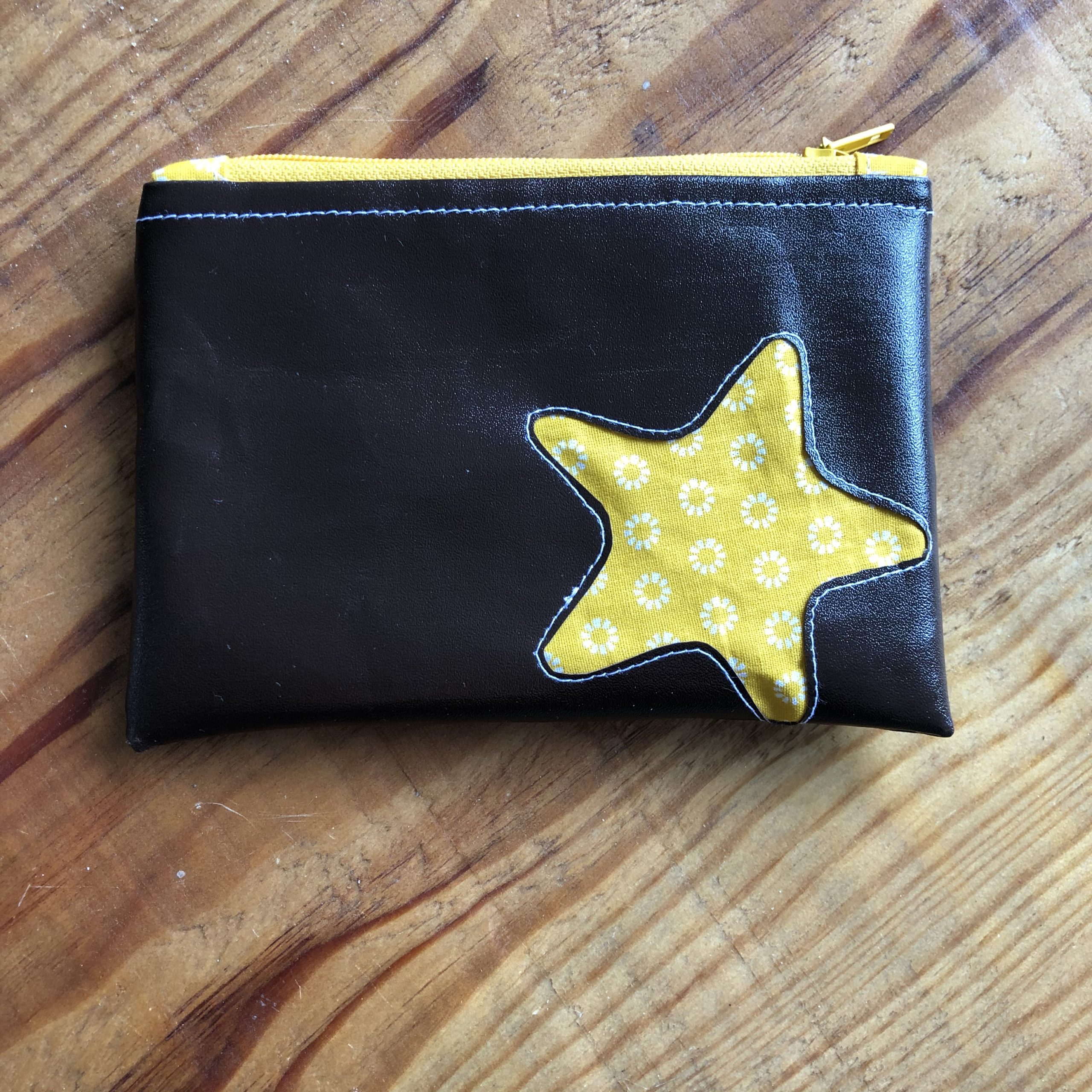 Petit porte-monnaie zippée en simili cuir. Idéal pour y glisser pièces de monnaie et billets et le placer dans un petit sac.