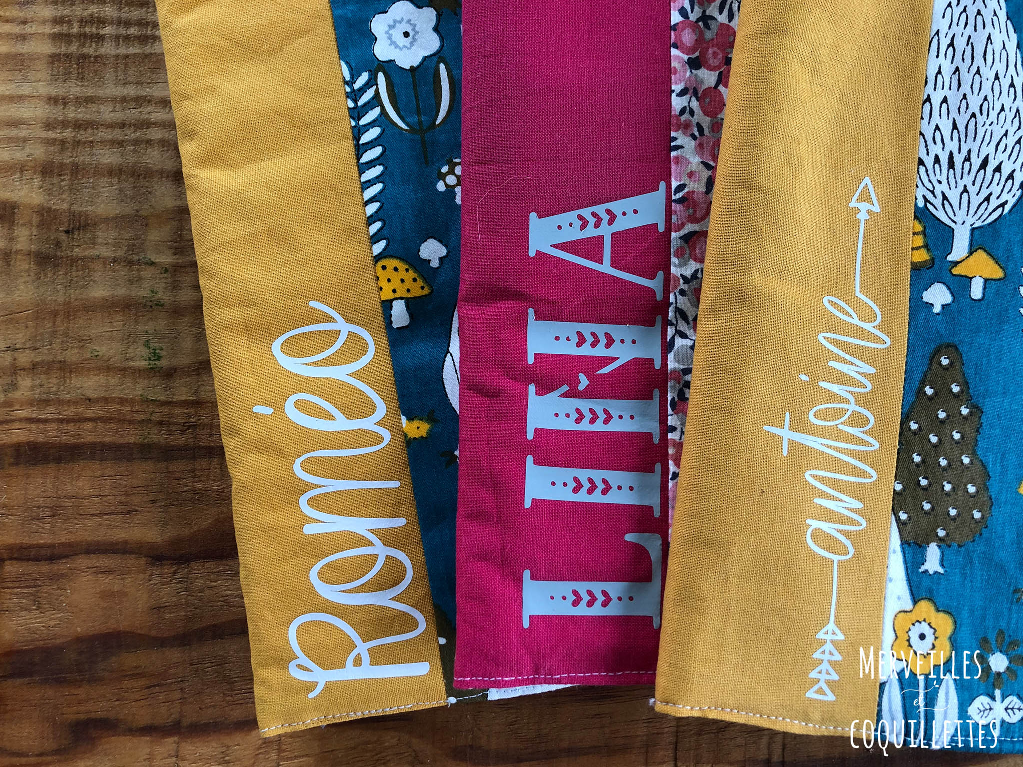 Fabrication française et artisanale par mes soins dans mon atelier à Marcheprime (33-Bassin d’Arcachon). N’hésitez pas à me contacter pour une version personnalisée : tissu et écriture du prénom au choix parmi une sélection.