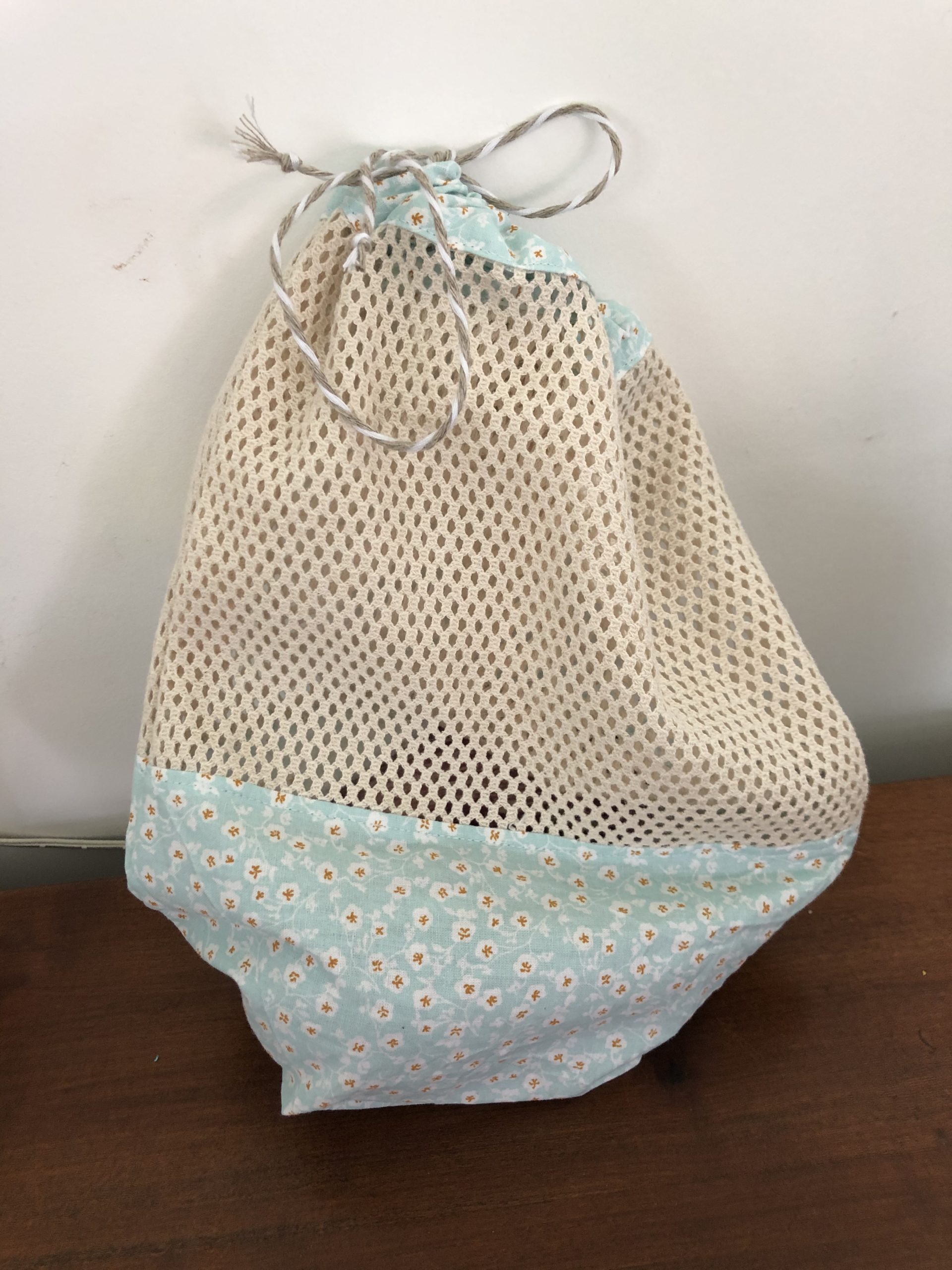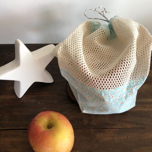 Filet à provision ou sac à vrac fait main. Fond plat pour accueillir des fruits ou légumes sans les écraser.