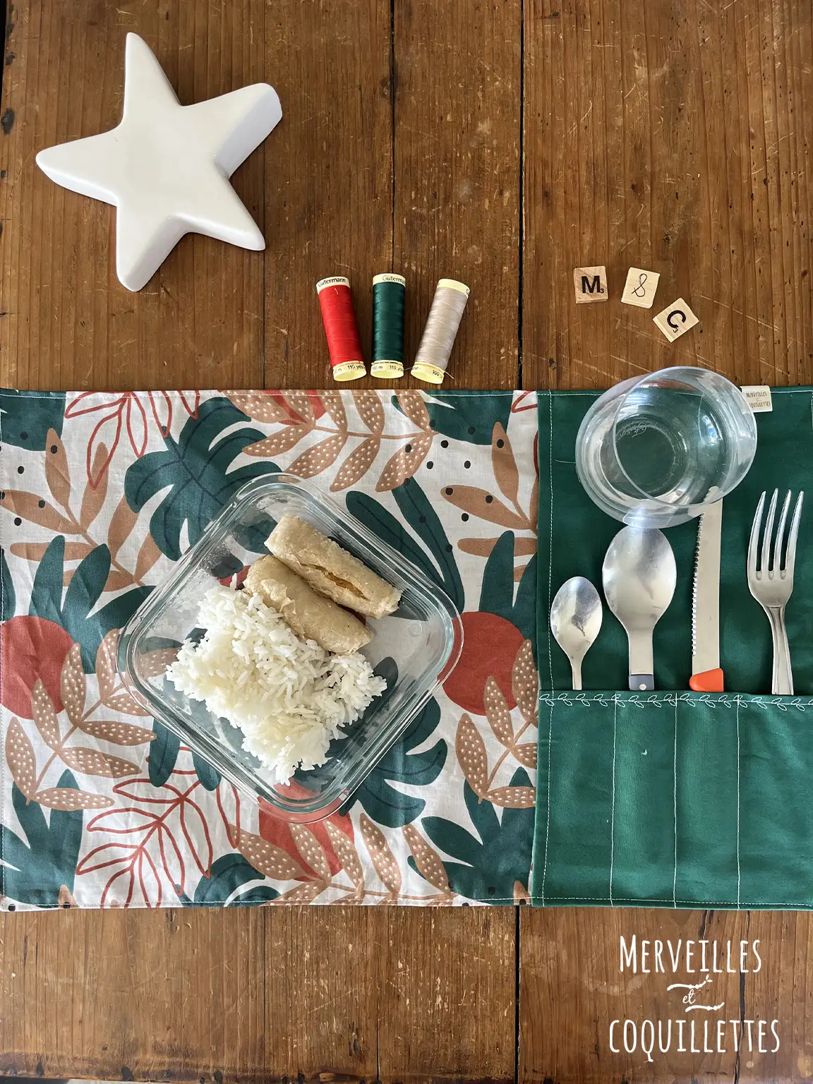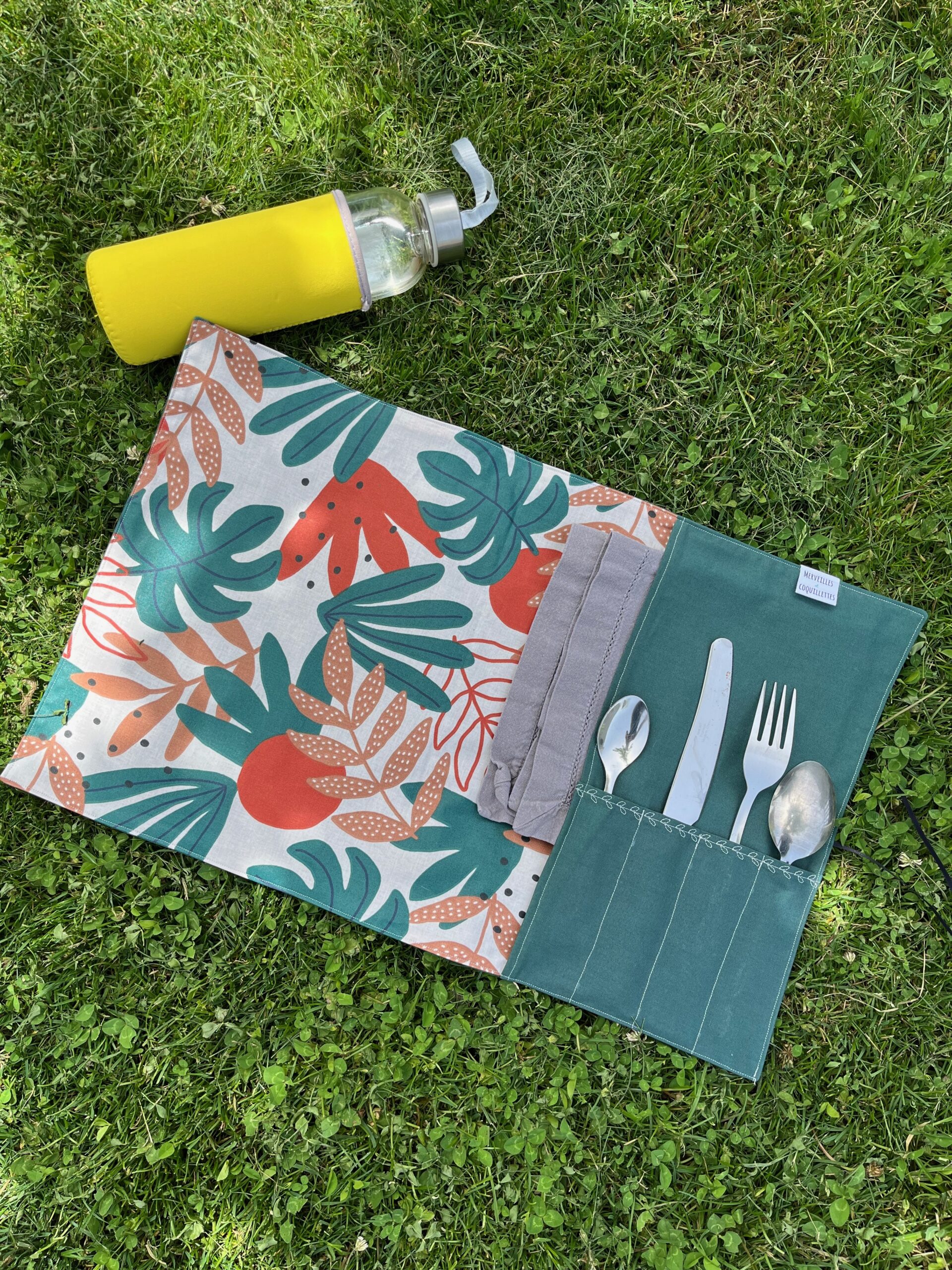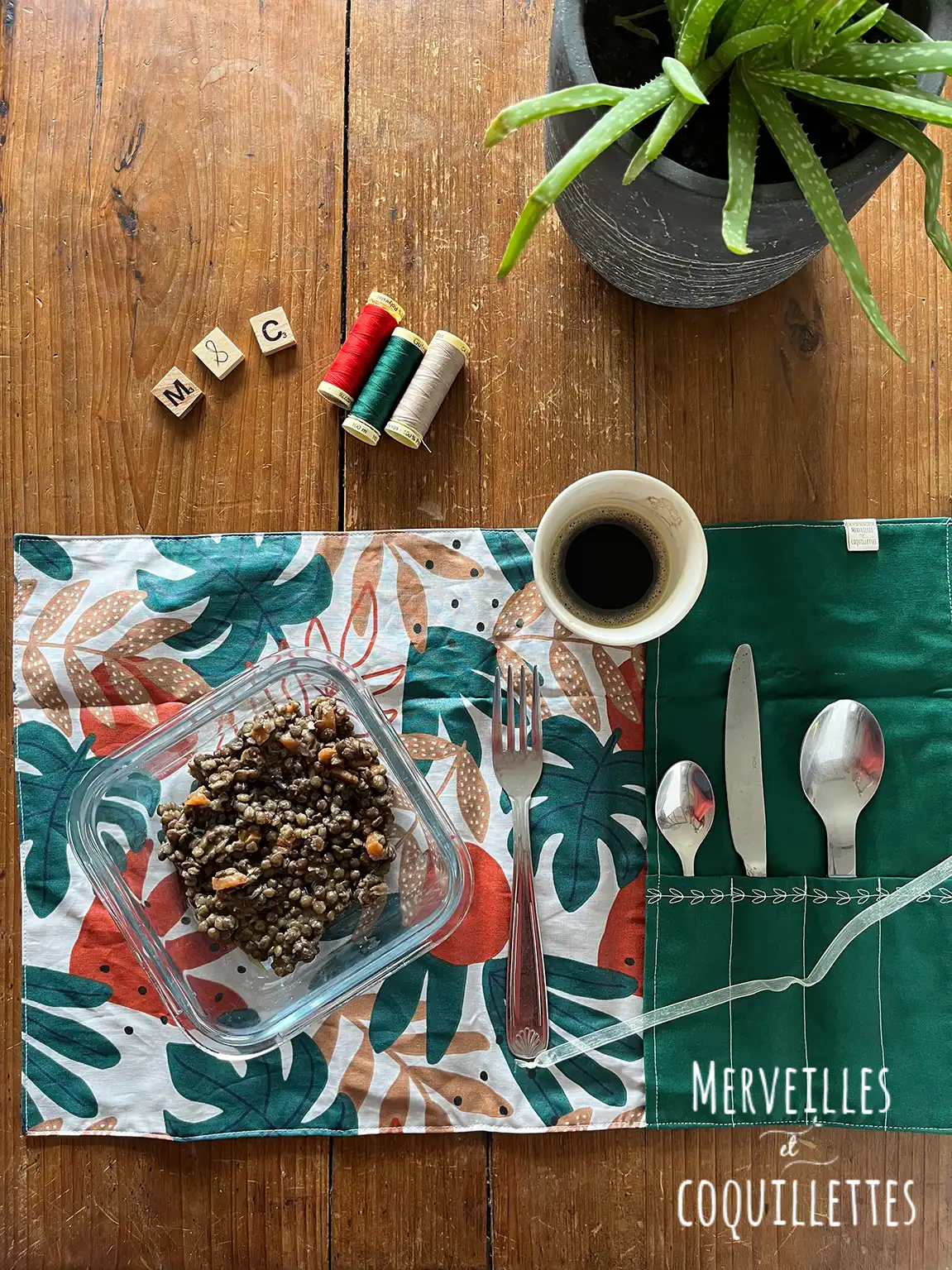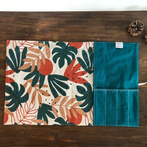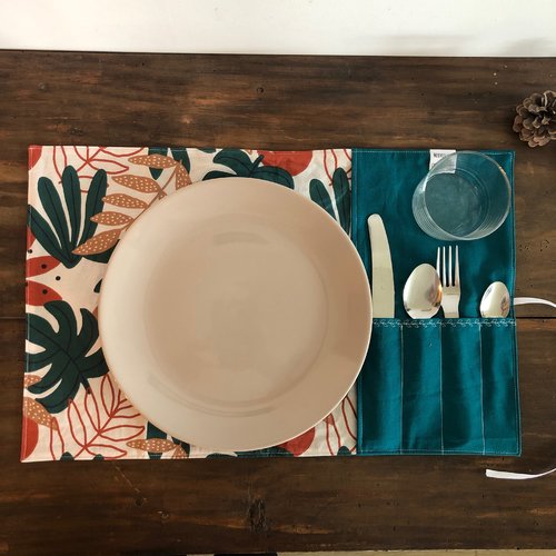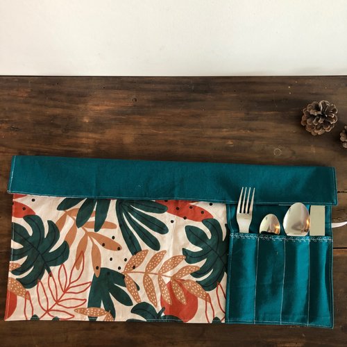 Coton couleur « vert pétrole » et Coton enduit. imprimé « nature sauvage »