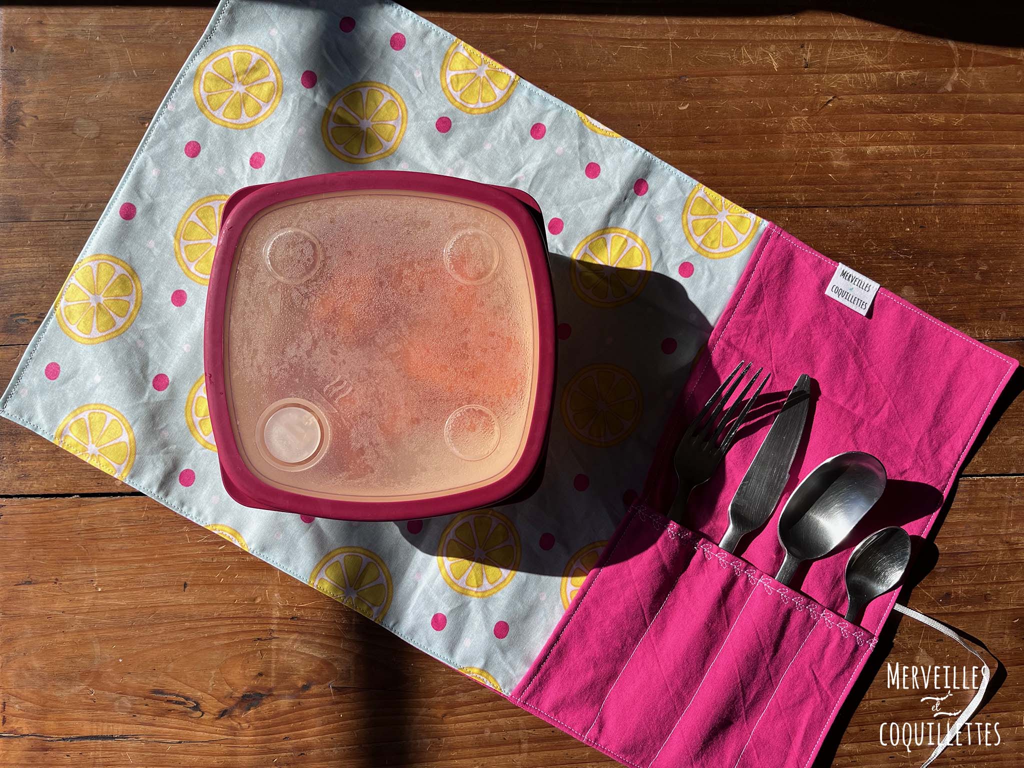 Set de table nomade pour transporter les couverts et manger sur un espace propre et étanche !