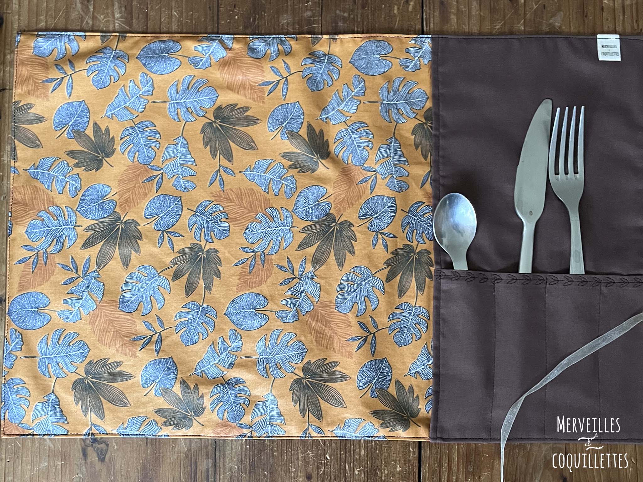 Coton couleur « marron » et Coton enduit imprimé « feuilles d’automne »