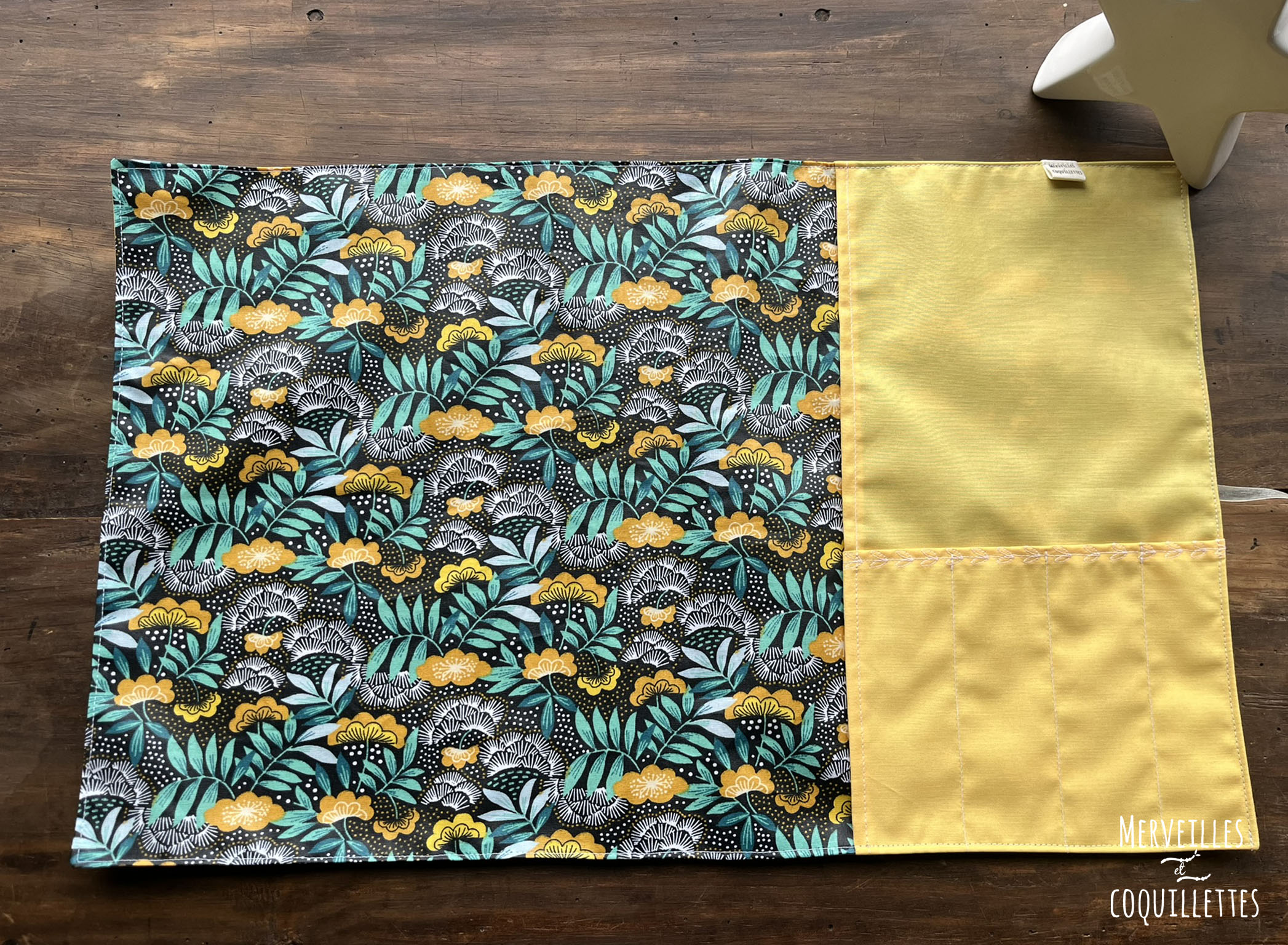 Coton couleur « jaune » et Coton enduit imprimé « Forêt de nuit »