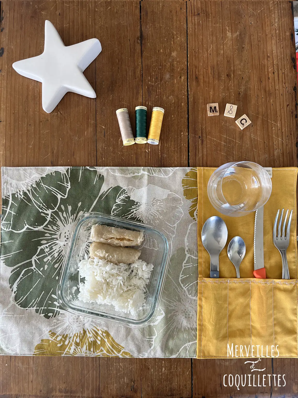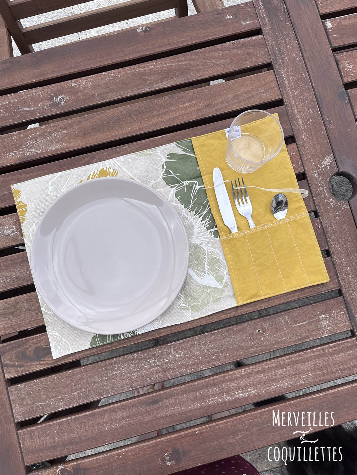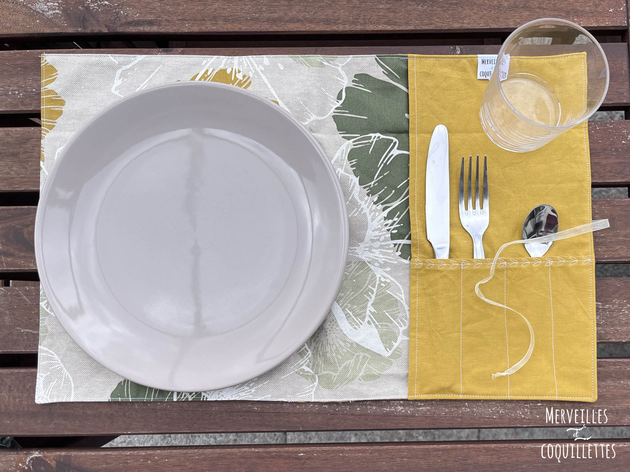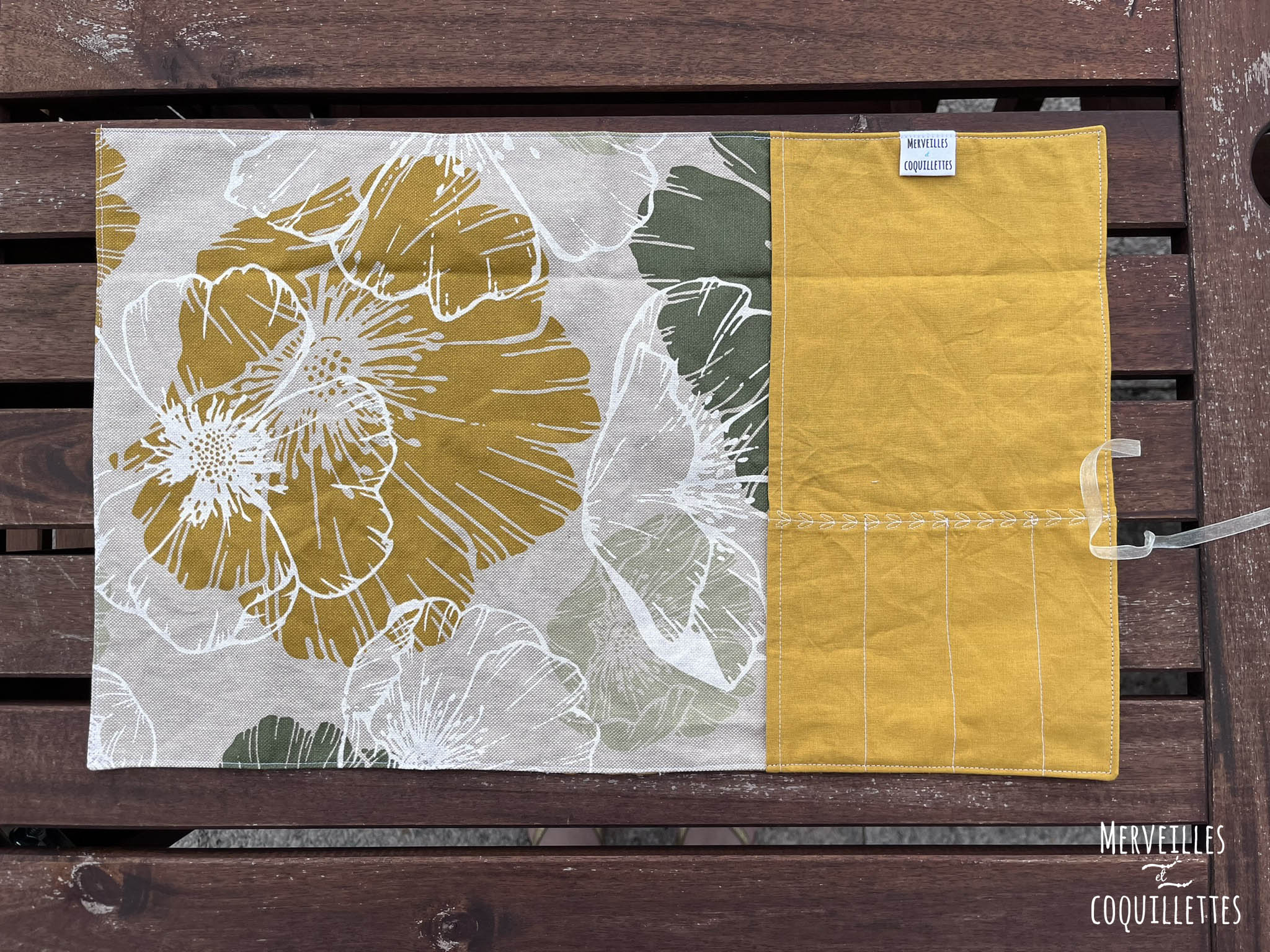 Coton couleur « moutarde » et Coton enduit imprimé « Hibiscus »