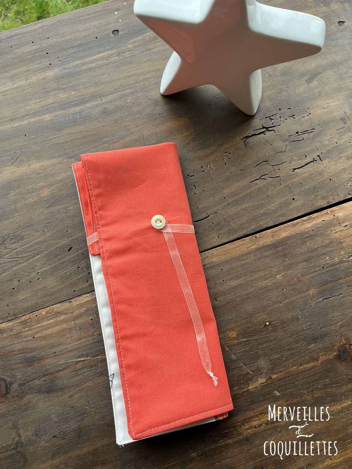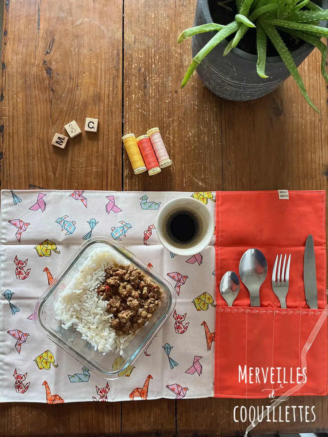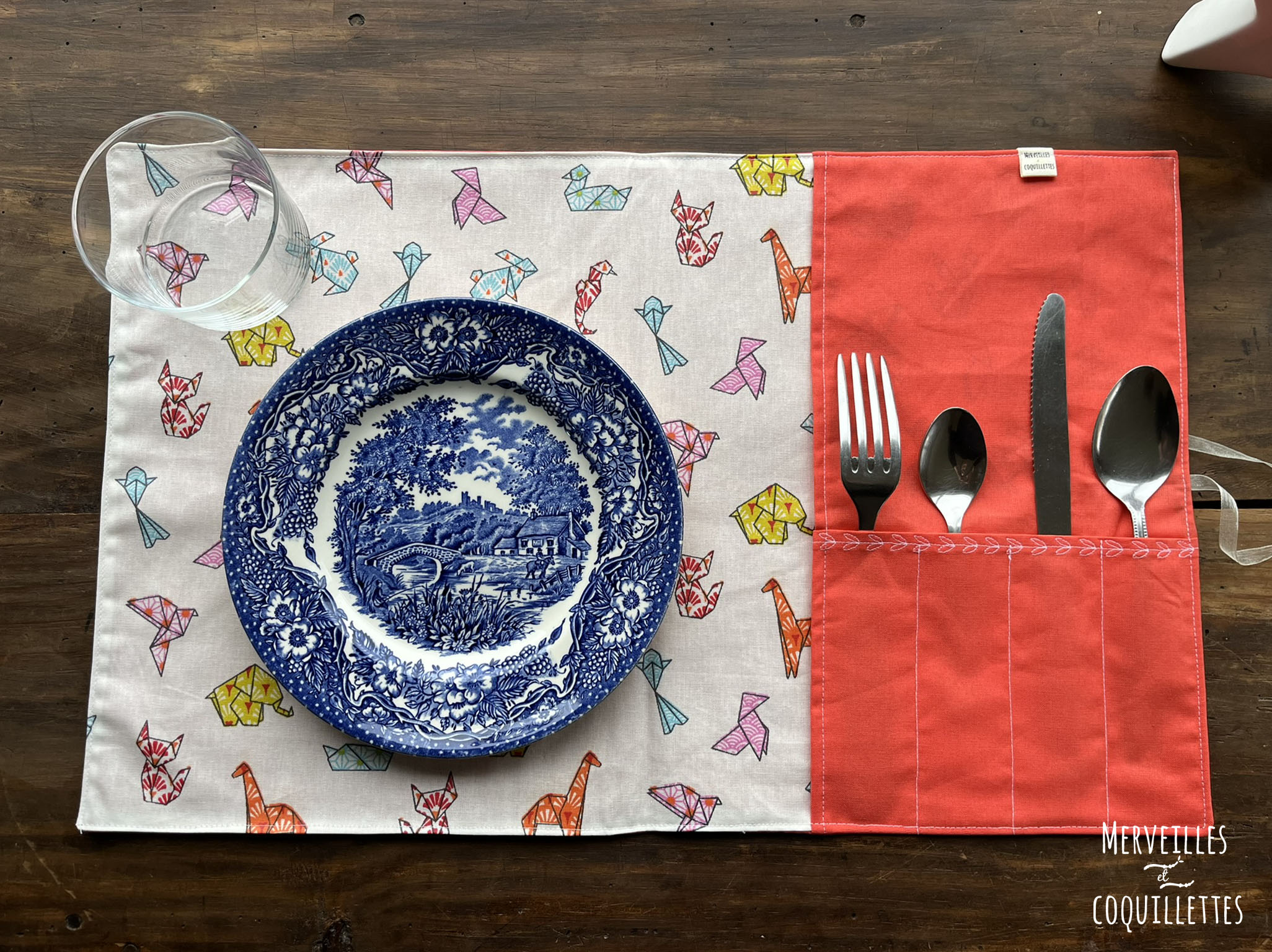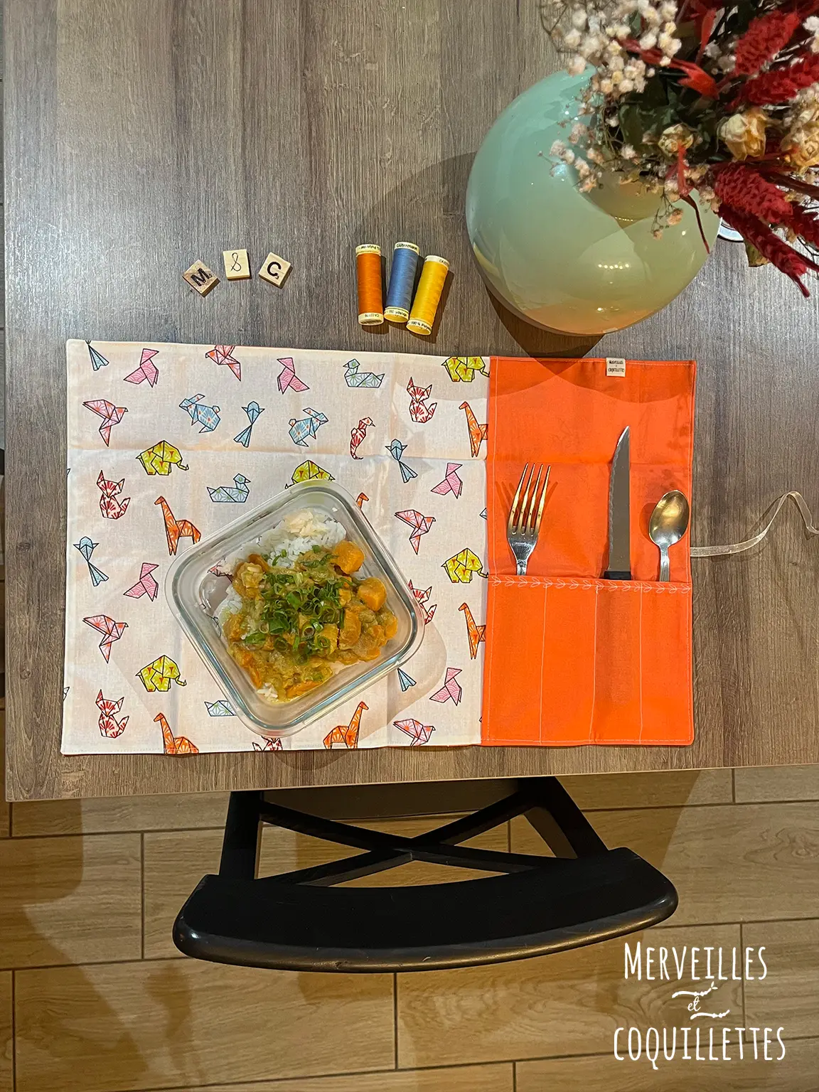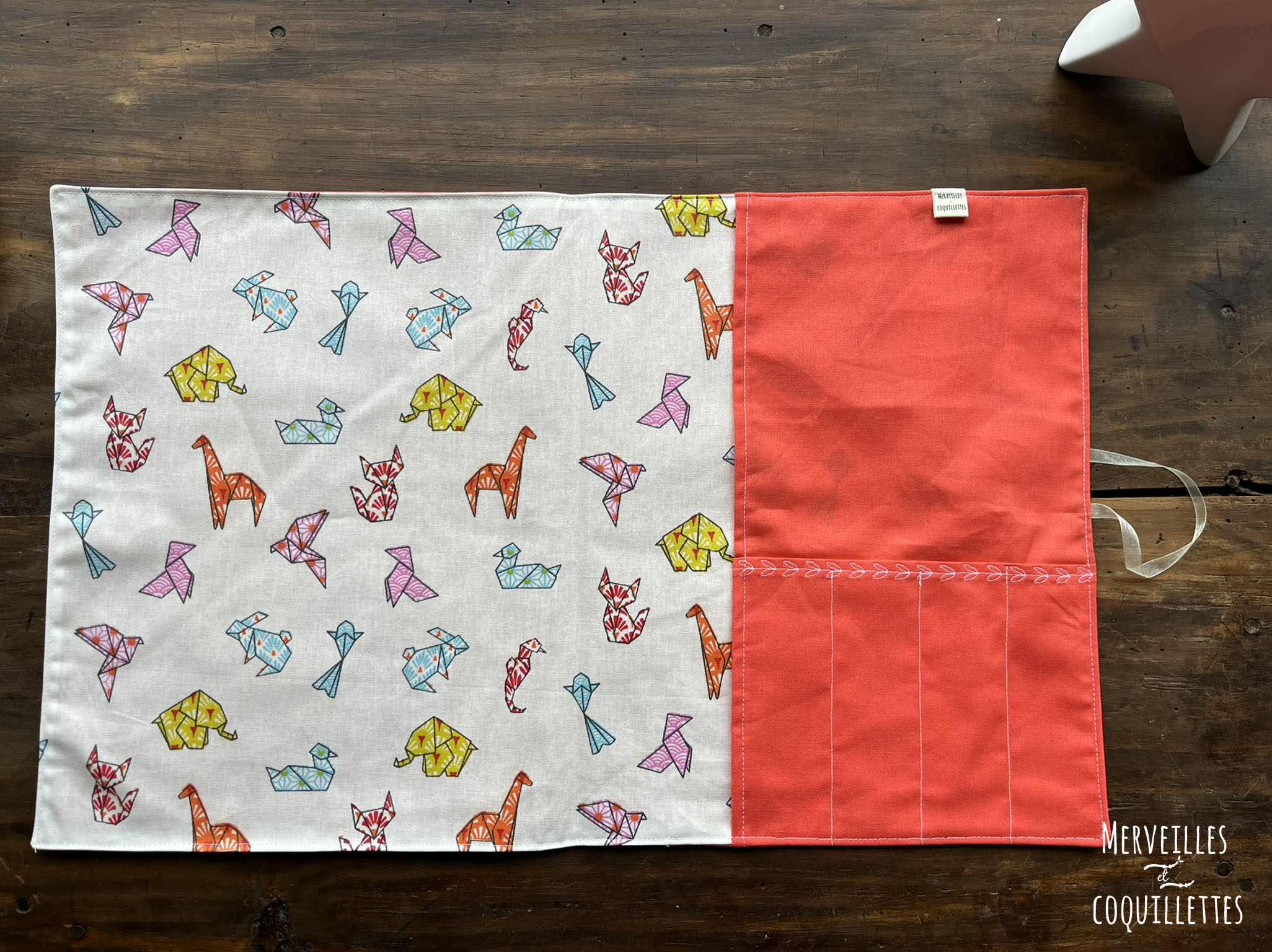 Coton couleur « orange » et Coton enduit imprimé « origami »