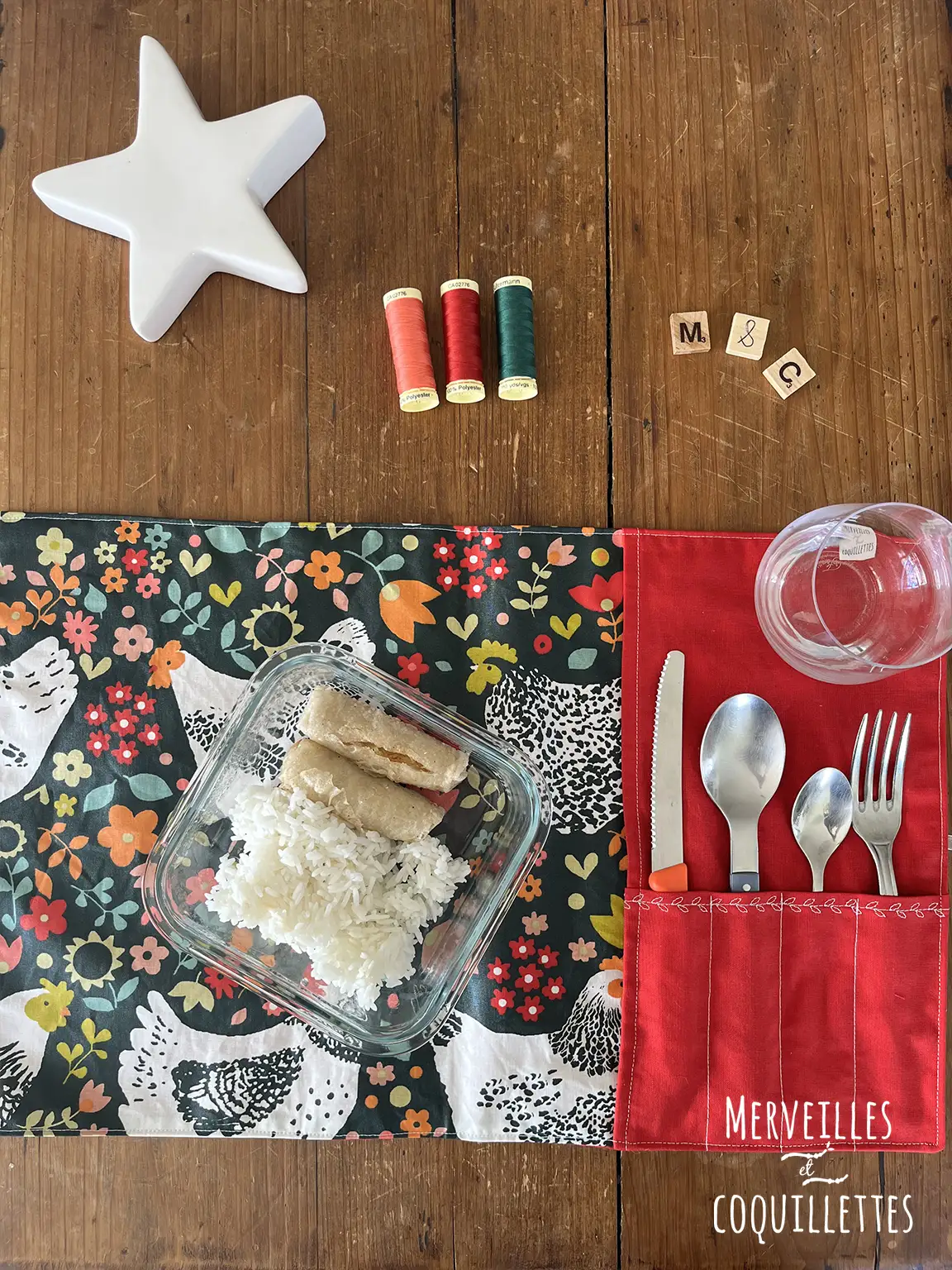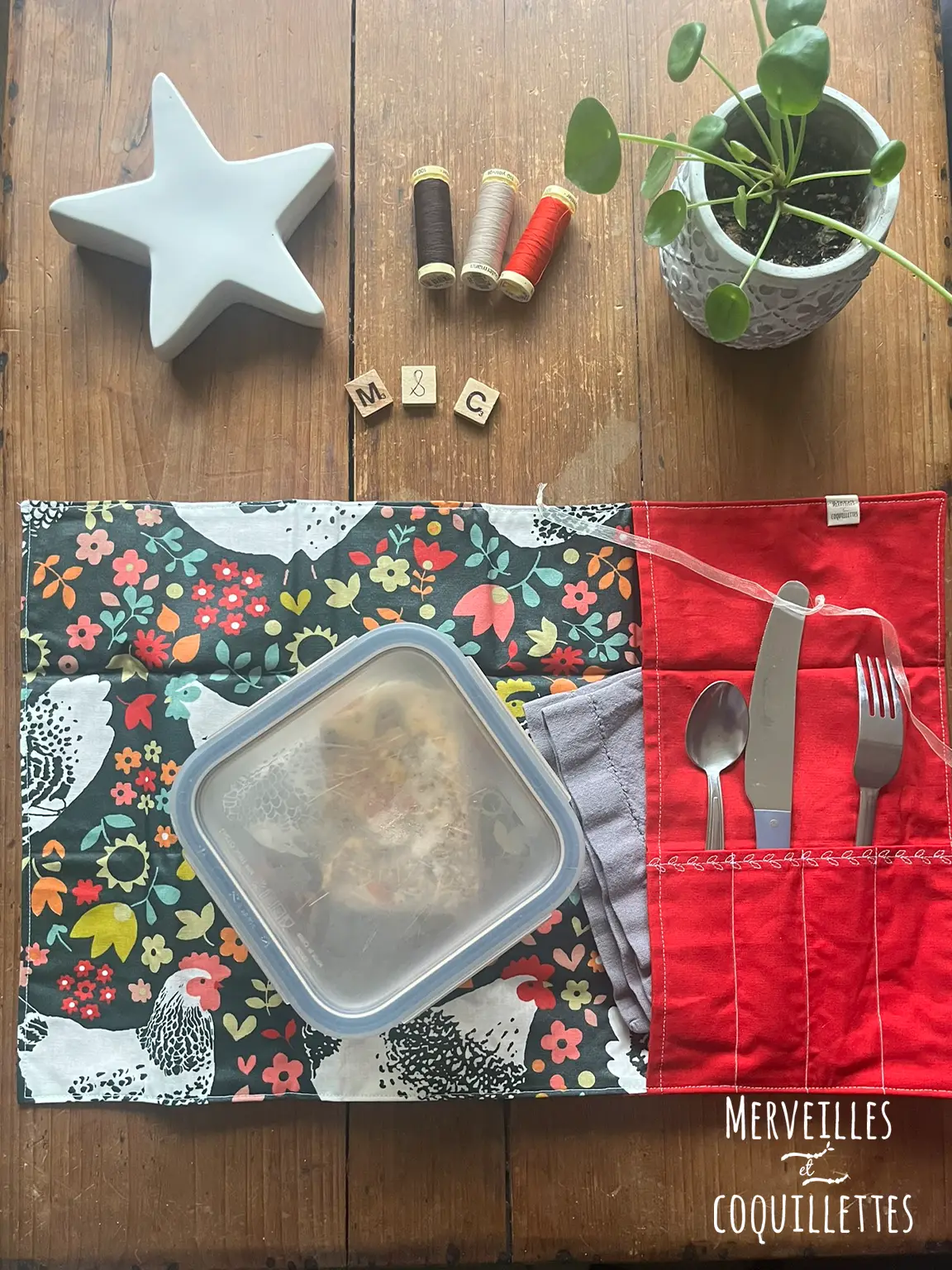 Set de table nomade pour transporter les couverts et manger sur un espace propre et étanche !
