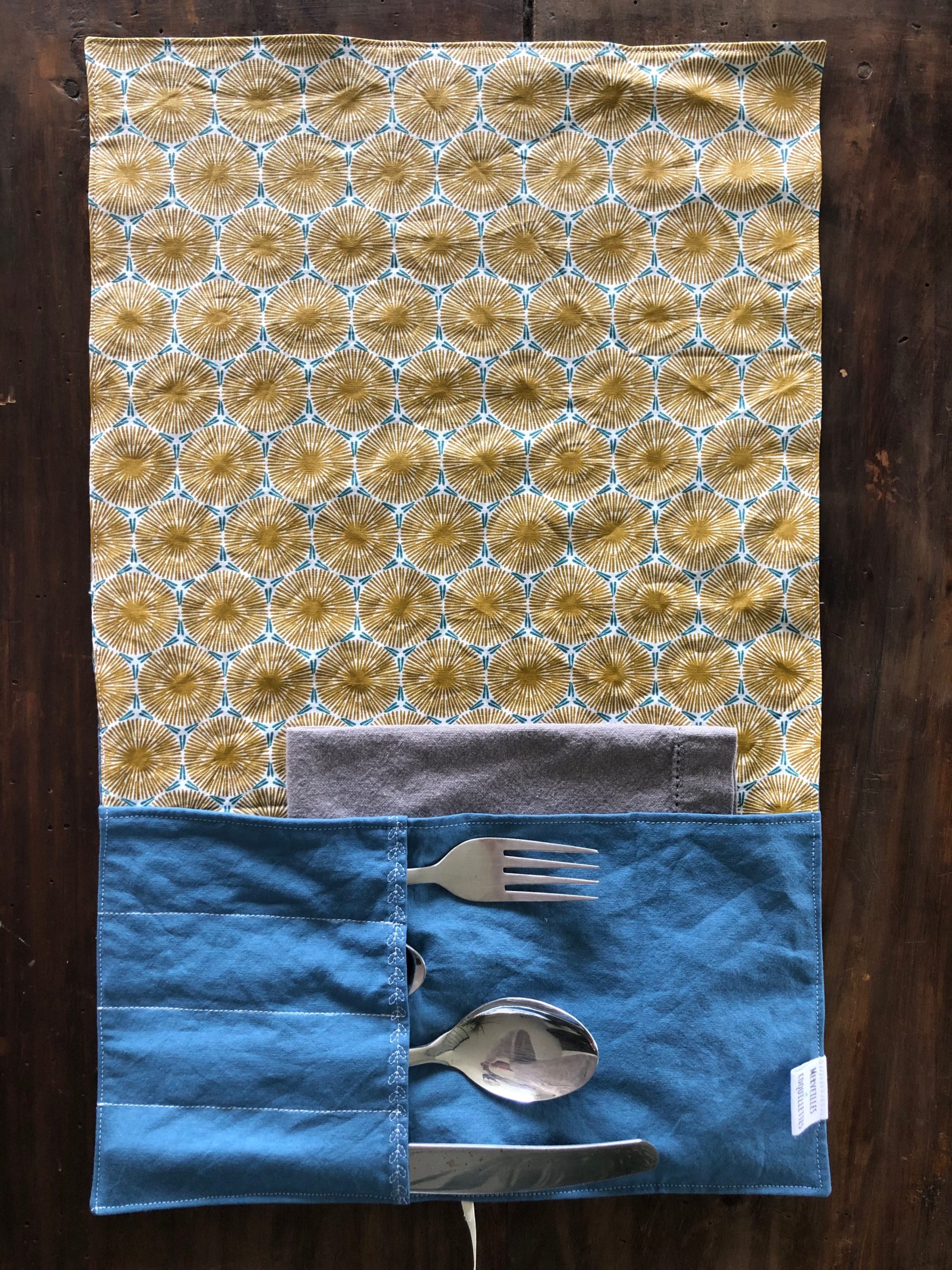 Set de table nomade pour transporter les couverts et manger sur un espace propre et étanche !